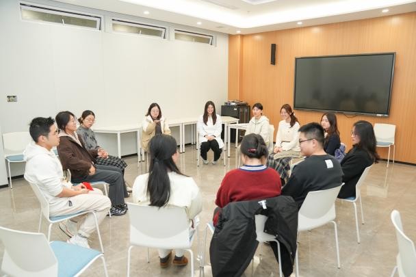 在团体体验环节,同学们在上海市精神卫生中心老师的引导下开展了心理小游戏和团体体验活动。在系列活动中,同学们暂时放下科研任务与学业压力,通过沉浸体验,逐渐舒缓自身情绪、缓解身心疲惫。