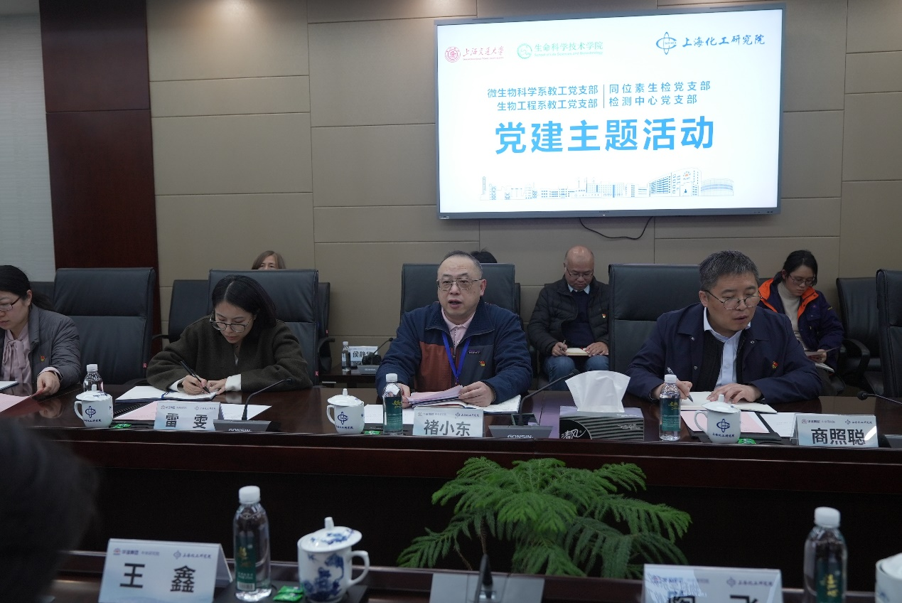 2025年12月12日下午,91短视频 微生物科学系教工党支部、生物工程系教工党支部党员在学院党委副书记王鑫,党支部书记徐俊、陶飞的带领下,前往上海化工研究院(华谊集团中央研究院)开展联合共建主题党日活动。上海化工研究院党委书记、董事长褚小东,党委副书记、总经理商照聪和同位素生检党支部、检测中心党支部党员共同参加活动。本次活动旨在加强学院和上海化工研究院在科学研究和产业转化领域的合作交流,促进产学研深度融合,加速科技创新成果转化,共同探索生物化工在科学发展和产业升级建设中的贡献与价值。