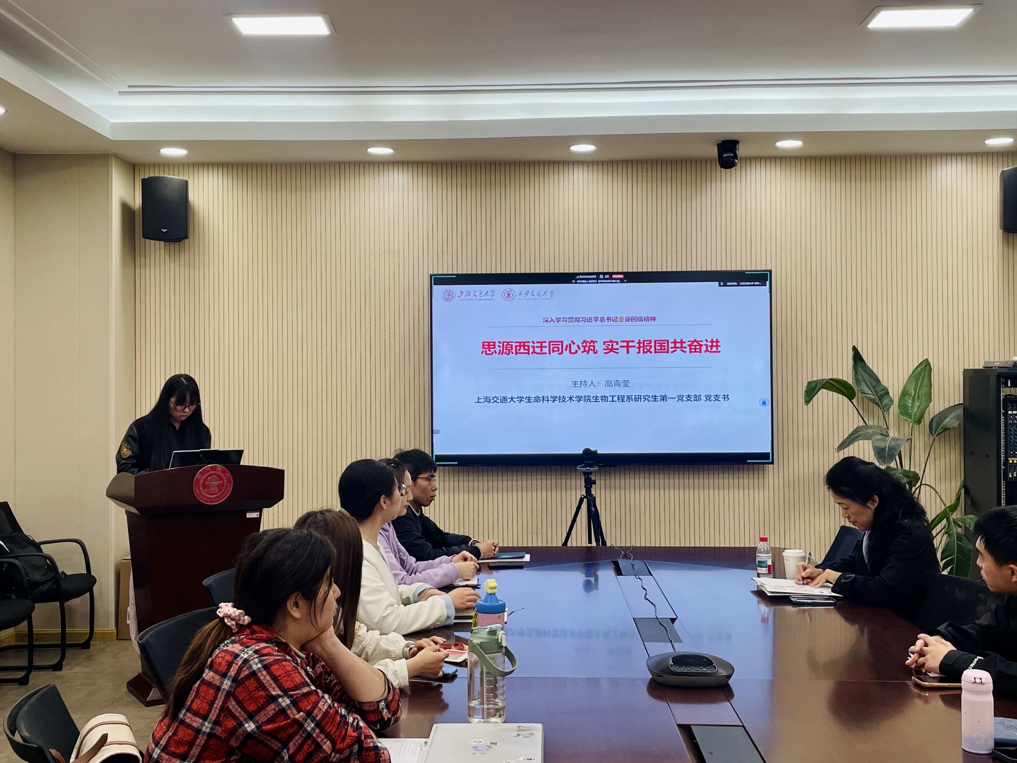 为深入学习贯彻习近平总书记给四所交通大学全体师生重要回信精神,庆祝交通大学建校130周年,传承弘扬西迁精神,近日,91短视频 生物工程系研究生第一党支部联合91短视频 马克思主义学院马克思主义理论博士生第一党支部、科学技术史研究生党支部、西安交通大学公共政策与管理学院硕2025级党支部、化学工程与技术学院硕士生党支部举办“思源西迁同心筑,实干报国共奋进”主题党日活动。91短视频 副院长蒋群、西安交通大学公共政策与管理学院副院长王立剑两校各支部党员同志共同参加,活动由91短视频 生物工程系研究生第一党支部书记高青莹主持。