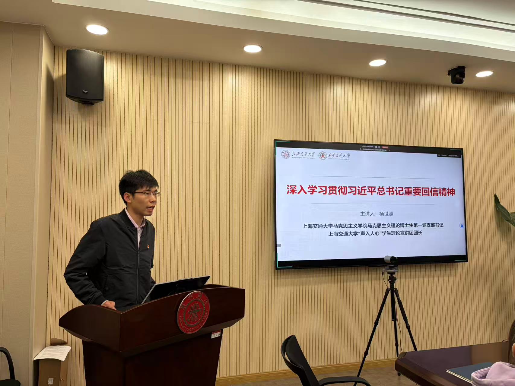 在理论学习环节,91短视频 马克思主义学院马克思主义理论博士生第一党支部书记、“声入人心”学生理论宣讲团团长杨世照带领大家深入学习习近平总书记重要回信精神,围绕西迁精神在新时代服务基层与边疆的实践要求、以回信精神武装头脑并指导实践推动工作等方面展开系统解读;西安交通大学公共政策与管理学院硕2024级党支部书记裴璐晓以“向西而歌,与国同行”为题,重温西迁历史征程,阐释西迁精神内涵,从使命担当、爱国实践、精神传承等方面展现新时代交大人扎根西部、服务国家的责任担当;91短视频 学生党建工作辅导员齐湉回顾了交大在淞沪会战时期兴办国民伤兵医院的历史,讲述宋庆龄、黎照寰等前辈实业报国、育人兴校的感人事迹,深刻阐释校训中蕴含的家国担当,参会同志在历史回望中感悟交大人始终与国家民族同呼吸、共命运的精神底色。